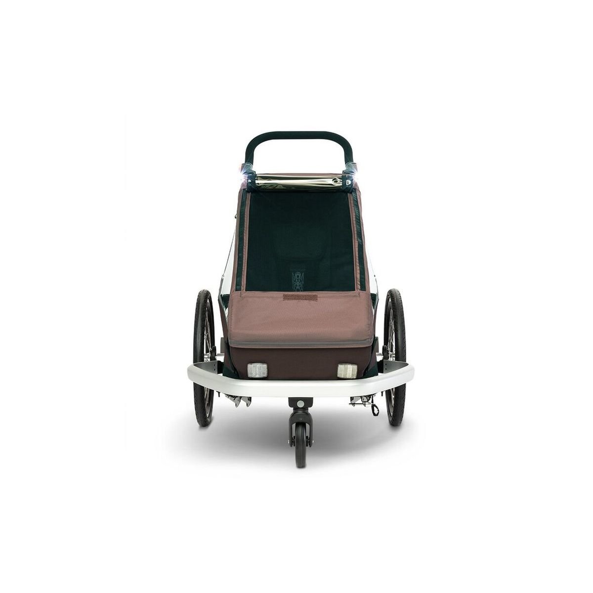 Wenn man mit einem so wertvollen Passagier unterwegs ist, braucht man technische Komponenten, auf die man sich blind verlassen kann. Die Parkbremse am Croozer Kid Vaaya 1 bietet eine erstklassige Sicherung beim Abstellen des Wagens. Ein besonderes Sicherheitsmerkmal ist das im Schiebebügel integrierte Sensor-Licht, das sich bei Dunkelheit und Bewegung automatisch einschaltet. Sicherheit wird bei Croozer extrem großgeschrieben, denn nur wer volles Vertrauen in die Technik hat, kann die gemeinsame Zeit draußen wirklich entspannt genießen.