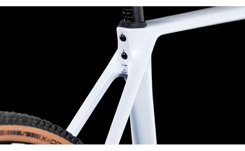 Das Cube Cross Race C:62 Race teilt seine Rahmen-Grundlage mit allen C:62-Modellen der Cross Race-Familie: C:62 Advanced Twin Mold Technology, interne Kabelführung, integrierte Sattelstützenklemme, Flat Mount Scheibenbremsen, 12×142mm Steckachse. Hochmodulige Fasern, nanopartikel-verstärkte Bindungsmatrix — das ist kein Einstiegs-Carbon, sondern Cubes bewährte High-Performance-Plattform.