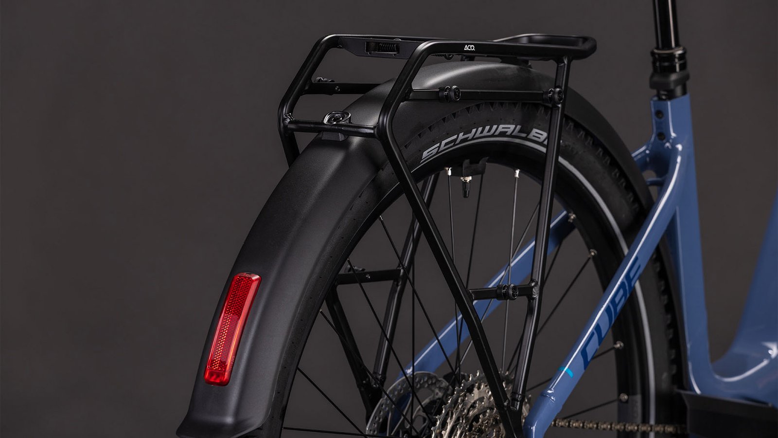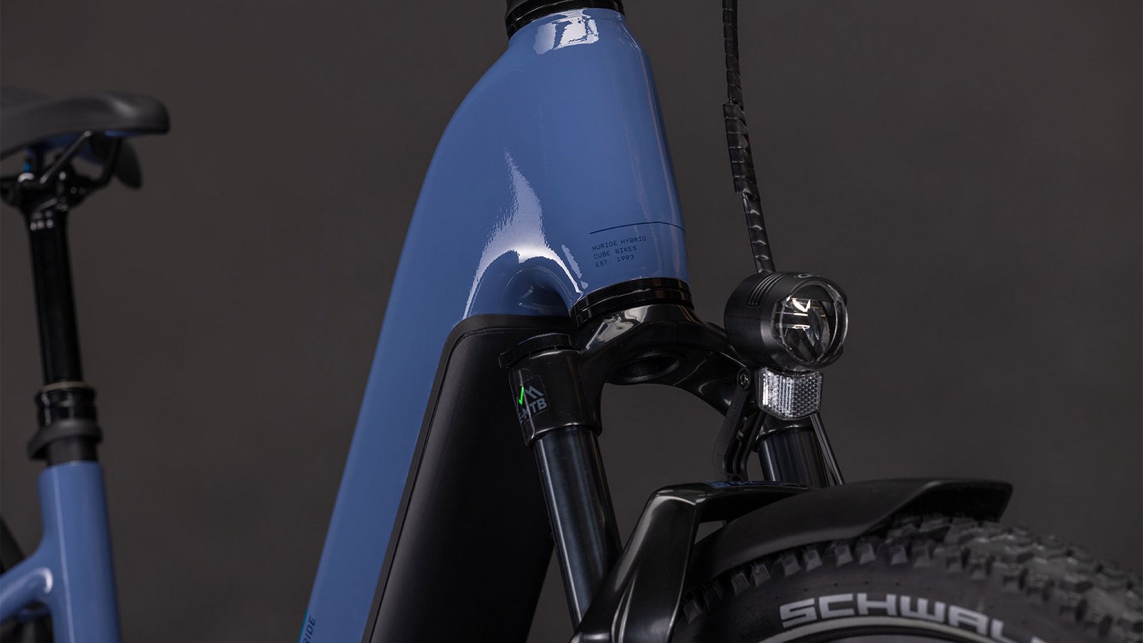 360°-Ansicht öffnen Highlights Eleganter Aluminium Rahmen mit innenverlegten Zügen, UDH Schaltauge, ausgelegt für ein maximales Systemgewicht von 150 kg Kraftvoller Bosch Performance Line CX Gen.5 Smart System Motor mit 100 Nm Drehmoment Hohe Reichweite dank Bosch Powertube 800 Wh Akku Bosch Kiox 300 Display und Bosch LED Remote für klare und intuitive Bedienung des E-Bike Systems RockShox Recon Silver RL Air Federgabel mit 100 mm Federweg XT RD-M8100-SGS 1×12-fach Schaltung von Shimano Hydraulische 4 Kolben BR-MT420 Scheibenbremse von Shimano mit 180 mm Bremsscheiben Robuster ACID SLX 25 Tubeless Ready Laufradsatz Ausgestattet mit Schutzblechen, ACID SIC 2.0 Gepäckträger und Beleuchtung RAHMEN Cube Nuride Hybrid EXC Easy Entry Der Tiefeinsteiger-Rahmen des Nuride Hybrid hält, was sein Name verspricht – einfaches, unkompliziertes Auf- und Absteigen sind damit fix inklusive. Doch da ist noch mehr: Neben einer Federgabel mit 100 mm Federweg für ein Plus an Fahrkomfort und Kontrolle hat Cube das Chassis mit großzügiger Reifenfreiheit (sogar inklusive der mitgelieferten Schutzbleche) ausgestattet. Im Inneren verlaufende Züge unterstreichen die cleane Optik. Ebenso harmonisch ins Rahmendesign integriert sind der Bosch CX Antrieb und der 800 Wh PowerTube Akku. On top gibt’s einen integrierten Kettenschutz, serienmäßig verbaute Schutzbleche, Lichter, einen Seitenständer und den stabilen semi-integrierten Gepäckträger 2.0. Da kann das nächste Zweiradabenteuer direkt losgehen, oder?