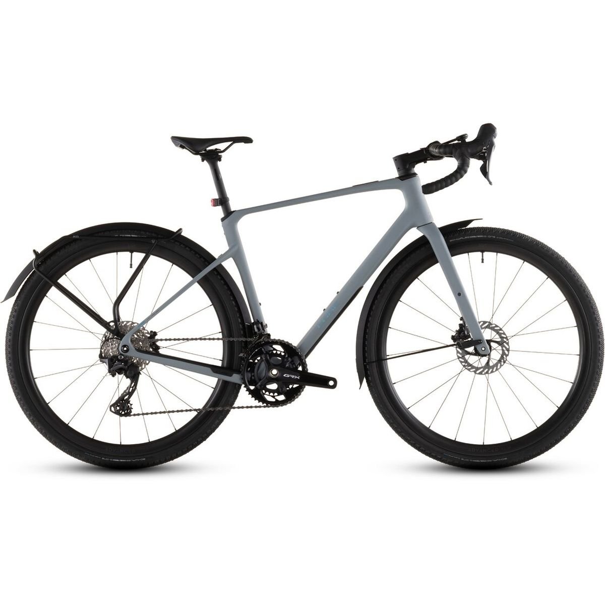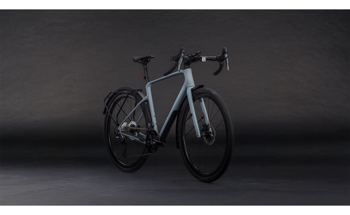 Das Herzstück des Cube Nuroad C:62 Pro FE ist sein hochwertiger C:62 Carbon-Rahmen – Cubes 62-Tonnen-Modul-Carbon-Technologie, die auch in dieser vollausgestatteten FE-Version keine Abstriche bei der Materialqualität macht. Das C:62-Layup bietet eine überzeugende Verbindung aus Leichtigkeit, Steifigkeit und gezielter Schwingungsdämpfung, die auf langen Allroad-Etappen spürbar die Ermüdung mindert. Die Allroad-Geometrie des Nuroad-Rahmens schafft eine ausgewogene Körperhaltung, die zwischen komfortabler Tourenausrichtung und aktiver Sportlichkeit überzeugend vermittelt – ideal für Fahrer, die ihr Rad sowohl im Alltag als auch bei sportlicheren Ausfahrten einsetzen. Das klassische Diamantdesign mit den charakteristischen Cube-Linien verleiht dem Nuroad C:62 Pro FE eine zeitlose Optik, die im Alltag ebenso überzeugt wie auf ausgedehnten Touren.
