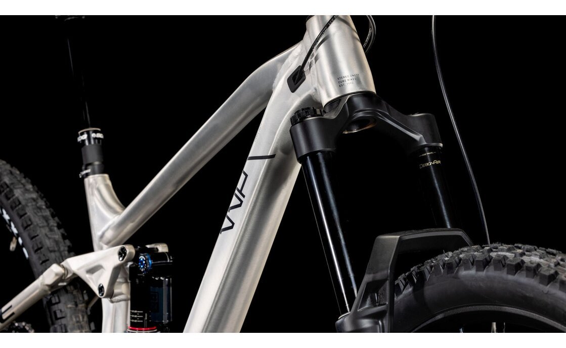 Während viele Hersteller in dieser Klasse auf Carbon setzen, vertraut Cube beim Stereo ONE77 Race auf hochwertiges High Performance Aluminium (HPA). Der hydrogeformte Rahmen ist auf maximale Haltbarkeit und Steifigkeit ausgelegt, was besonders in schnellen, verblockten Sektionen für ein präzises Lenkverhalten sorgt. Die Geometrie ist modern und aggressiv: Ein flacher Lenkwinkel sorgt für enorme Laufruhe bei hohen Geschwindigkeiten, während der steile Sitzwinkel eine zentrale Position über dem Tretlager ermöglicht. Dadurch lässt sich das Bike trotz seines stattlichen Federwegs überraschend effizient bergauf bewegen. Ein besonderes Feature ist die verstellbare Geometrie via Flip-Chip am Dämpfer sowie die Möglichkeit, den Lenkwinkel durch spezielle Lagerschalen im Steuersatz feinjustieren zu können.