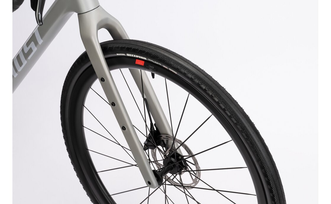 Die 28-Zoll-Laufräder des Ghost Asket CF LTD bieten das ideale Gleichgewicht zwischen Rolleffizienz auf Asphalt und Traktion auf Schotter und unbefestigten Wegen. Die hochwertigen Laufräder widerstehen den typischen Belastungen des Allroad-Betriebs zuverlässig und bieten durch den großzügigen Reifenfreiraum die Freiheit, verschiedene Reifenbreiten zu montieren. Auf befestigten Straßen sorgen schmalere Reifen für kraftsparendes Vorankommen, während breitere Gravel-Reifen auf rauem Terrain ausreichend Grip und Dämpfung liefern. Diese Anpassungsfähigkeit macht das CF LTD zum überzeugenden Mehrzweckrad für jeden Einsatzszenario.