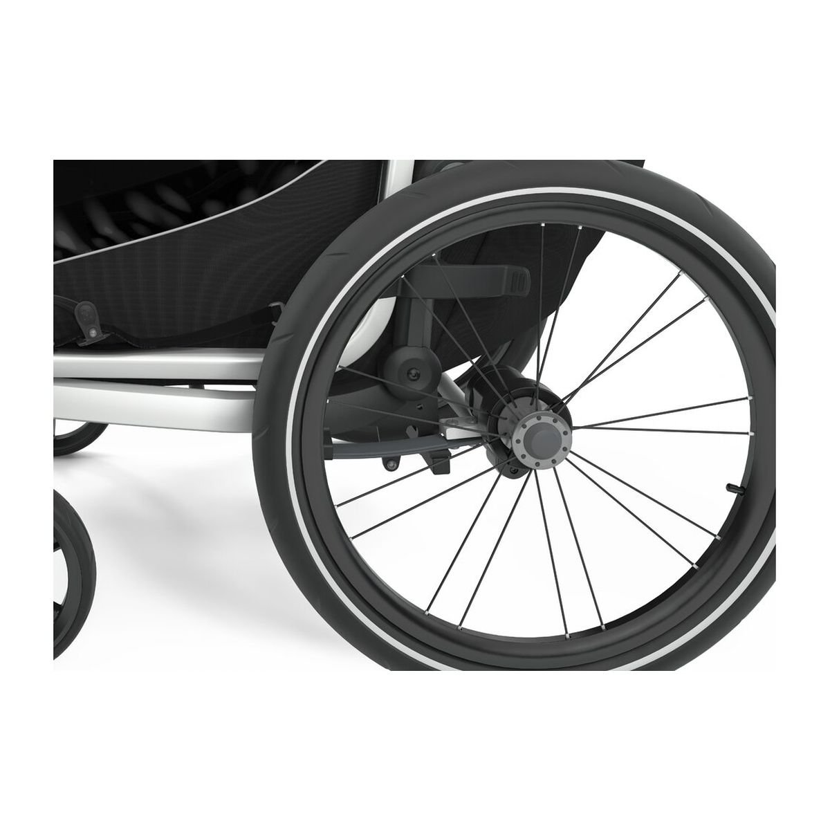 Wenn man mit einem so wertvollen Passagier unterwegs ist, braucht man technische Komponenten, auf die man sich blind verlassen kann. Die Parkbremse am Thule Chariot Lite single bietet eine erstklassige Sicherung beim Abstellen des Wagens. Sie sorgt dafür, dass das Gefährt selbst an Schrägen sicher stehen bleibt und nicht ungewollt wegrollen kann. Sicherheit wird bei Thule extrem großgeschrieben, denn nur wer volles Vertrauen in die Technik hat, kann die Freiheit der Natur wirklich entspannt genießen. Das Modell erfüllt die strengsten internationalen Sicherheitsnormen.